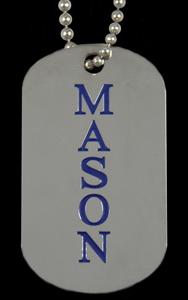 Step up to the ultimate in recognition Dog Tags. Full color organization crest on one side and letters on the other. Full color enamel details are finished on our jewelry quality tags with silver plating. Full military style stainless chains keep your tag in clear view. Packaged and ready for retail.