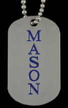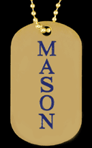 Our double sided dog tags have full color enamel details and are finished on our jewelry quality tags with silver or gold plating. Full military style stainless chains keep your tag in clear view. Our necklaces are gold or silver plate over brass and come with a matching chain. Both are packaged and ready for retail. Custom Mason Orders Accepted. |