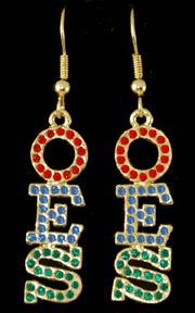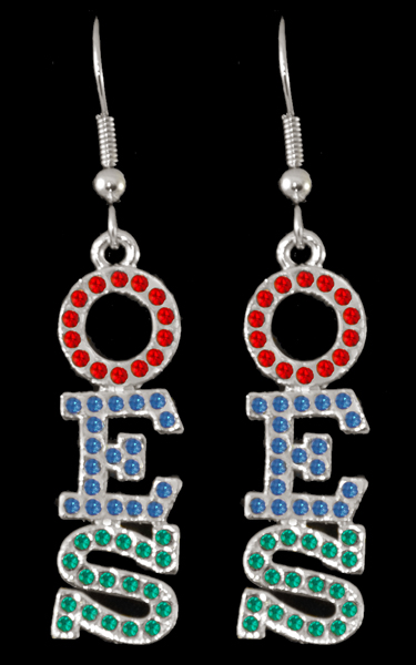 Our Order of the Eastern Star (OES) Earrings are a combination of quality and affordability that stand out in any crowd. Our Bling Earrings combine brilliant colored Swarovski Austrian Crystals perfectly placed within silver or gold plated letters over heavy brass. |