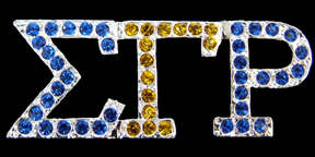 Our Austrian Crystal lapel pins are one of our most popular ladies jewelry selections. Beautiful, brilliant colored and white Swarovski Austrian Crystals are perfectly placed within the heavy silver and gold plated letters. A safety style pin is on the back. Each pin is 3/4" tall and 2" wide. Custom Orders Accepted.