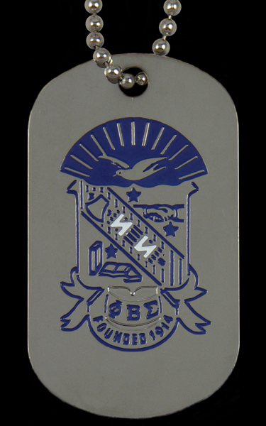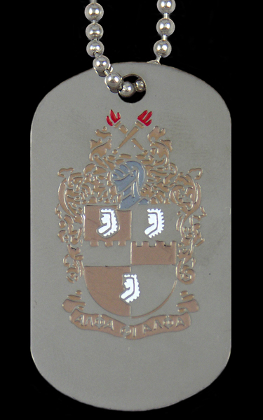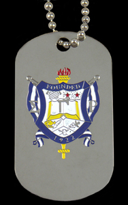 Step up to the ultimate in recognition Dog Tags. Full color organization crest on one side and letters on the other. Full color enamel details are finished on our jewelry quality tags with silver plating. Full military style stainless chains keep your tag in clear view. Packaged and ready for retail.