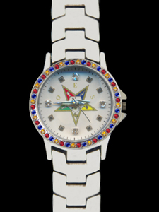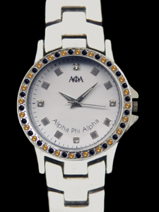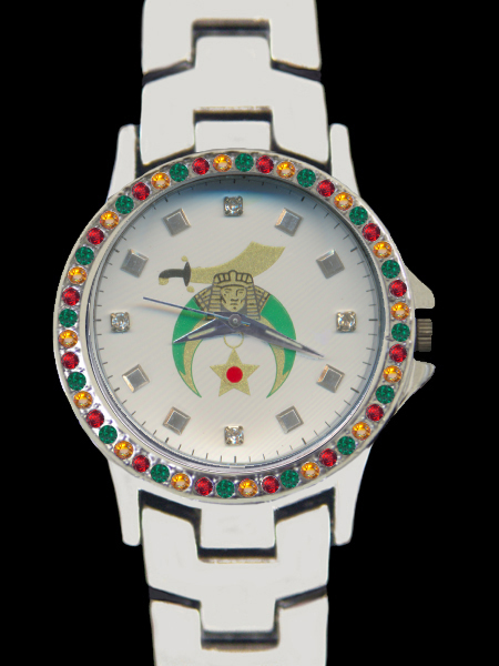 organization's colors inlaid with brilliant rhinestones. The watches are