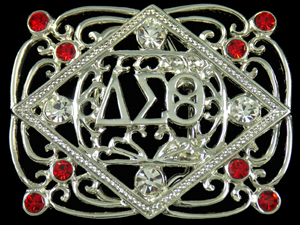 WOW! What can we say? We out did ourselves. Our ladies, fashion, Filigree Belt Buckles are a favorite among those who offer High Fashion and want a touch of class to their retail inventory. Magnificent in every detail. Each buckle includes matching stones for each Sorority. Accommodates belts up to a width of 1 3/4". Be sure to look at our newest Shield Belt Buckles which just arrived. Accept no imitations. Insist on National Sportswear & Emblem authenticity where you are assured our guaranteed quality.