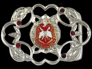 Our newest line of Ladies Belt Buckles is a unique a flowing design that combines brilliant diamond cut Swarovski Austrian Crystals and full color cloisonné hard enamel shields. Our Ladies Shield Belt Buckles are a beautiful addition to any belt! Accommodates belts up to 1 ¼” Wide. Buckle measures 2 5/8” Wide by 1 7/8” Tall. Accept no imitations. Insist on National Sportswear & Emblem authenticity where you are assured our guaranteed quality.