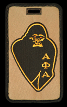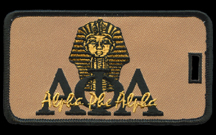 Our Greek luggage tags are heavy duty with full embroideries on twill backgrounds. They measure 4 1/2" x 2 1/2". Each tag has a strong vinyl I.D. window pocket on the back for your business card or other identification. A luggage tag strap cord is